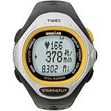 Combining GPS location data with heart rate monitoring, the Timex Ironman Trail Runner (model T5J985) is a great choice for serious and professional runners, providing latitude and longitude, altitude/elevation data, exact real-time/average/maximum speed, and pace calculation. It offers a stylish silver watch face accented with bright yellow, dark gray resin band with buckle closure, chest-strap heart rate monitor, and lightweight GPS receiver.